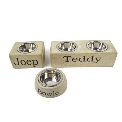 Opzoek naar unieke en handgemaakte voerbakken van beton voor uw favoriete huisdier, wij hebben nu een nieuwe Betonnen voerbak! Onze voerbakken zijn niet alleen functioneel, maar ook stijlvol en duurzaam. Gemaakt van hoogwaardig beton, zijn deze voerbakken bestand tegen krassen en tandafdrukken van uw huisdier, ook zijn ze geschikt om buiten neer te zetten! Bovendien kunt u de naam van uw huisdier gratis op de voerbak laten zetten, waardoor het een persoonlijk tintje krijgt.