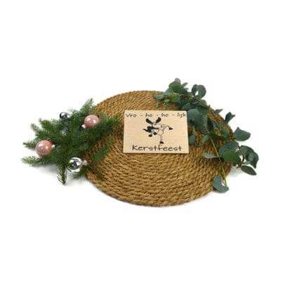 Houten kerstkaart vro-ho-lijk kerstfeest