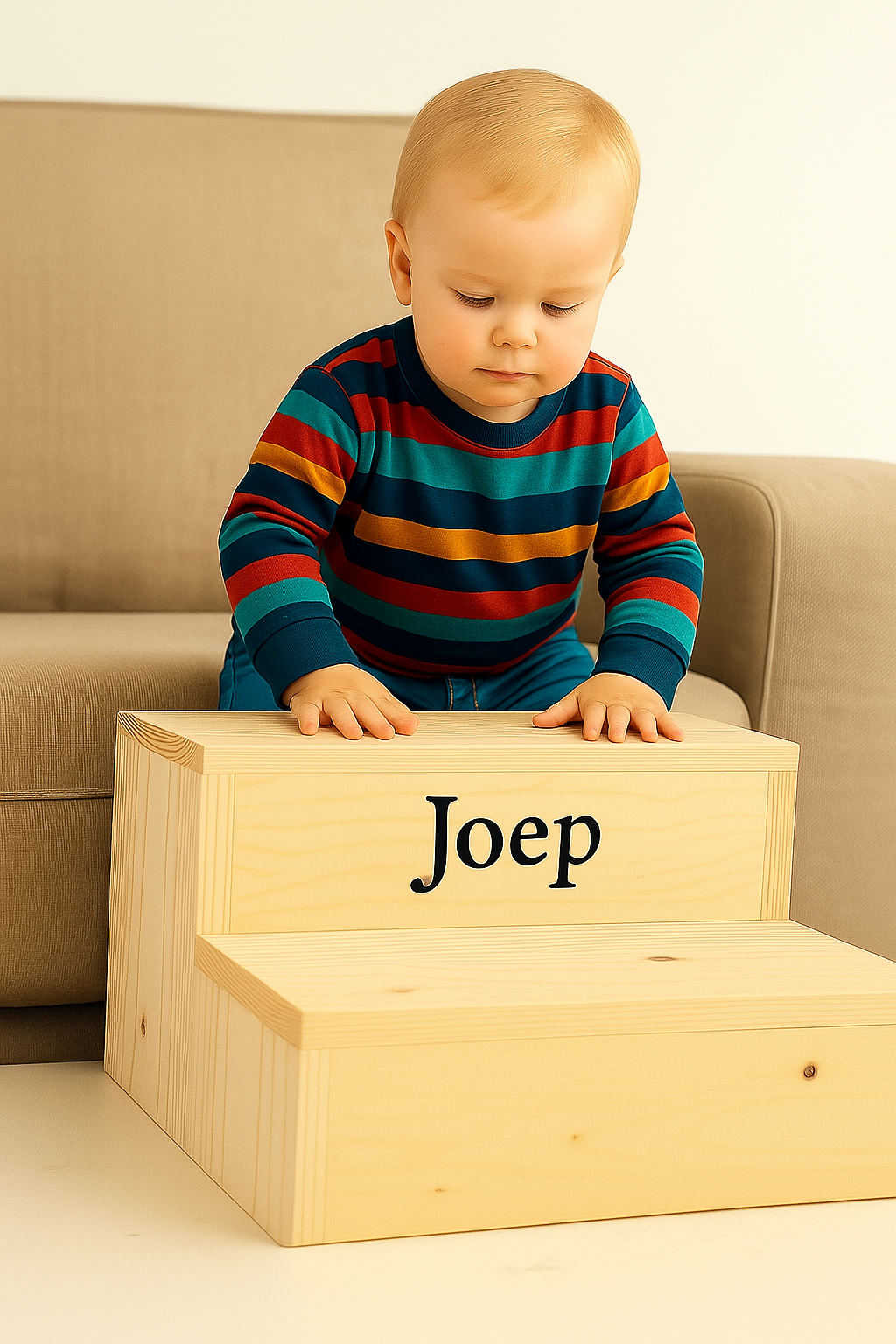 Houten opstapjes Ze zijn niet alleen handig voor jezelf wanneer je bijvoorbeeld iets uit een hoog kastje moet pakken of de ramen gaat lappen. Ook voor kinderen zijn ze erg handig, zelf op de wc gaan zitten, helpen in de keuken of tandenpoetsen. Maar dat niet alleen, ze zijn ook nog verkrijgbaar met je eigen naam! Tandenpoetsen was nog nooit zo leuk.
