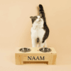 Met een compact formaat past onze houten kattenvoerbak perfect in elke ruimte. Het neemt minimale ruimte in beslag en voegt tegelijkertijd een vleugje stijl toe aan je interieur.
