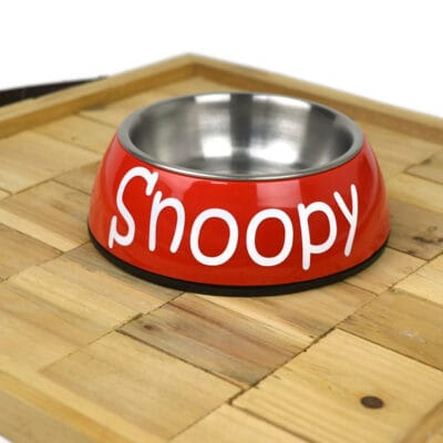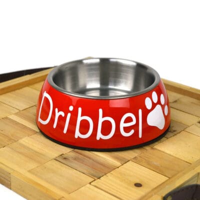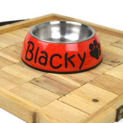 Voerbak voor hond of kat – Rood: Een unieke voerbak met je eigen gekozen naam is een leuk cadeautje voor je viervoeter. De voerbak is verkrijgbaar in drie verschillende kleuren, en in drie verschillende maten! Daarnaast kun je ervoor kiezen de naam in het wit of in het zwart te laten bedrukken op de voerbak. Bovendien kun je ook kiezen voor een honden of kattenpootje op de voerbak. Verder kun je met je eigen creativiteit deze leuke voerbak nu nog meer eigen maken. Een groot pluspunt is dat de rvs bak uit de voerbak kan worden gehaald en vaatwasser bestendig is! De voerbak beschikt over een kleine antislip rand waardoor de voerbak niet de hele kamer doorschuift wanneer je huisdier geniet van zijn of haar lekkere ontbijt, lunch of diner!